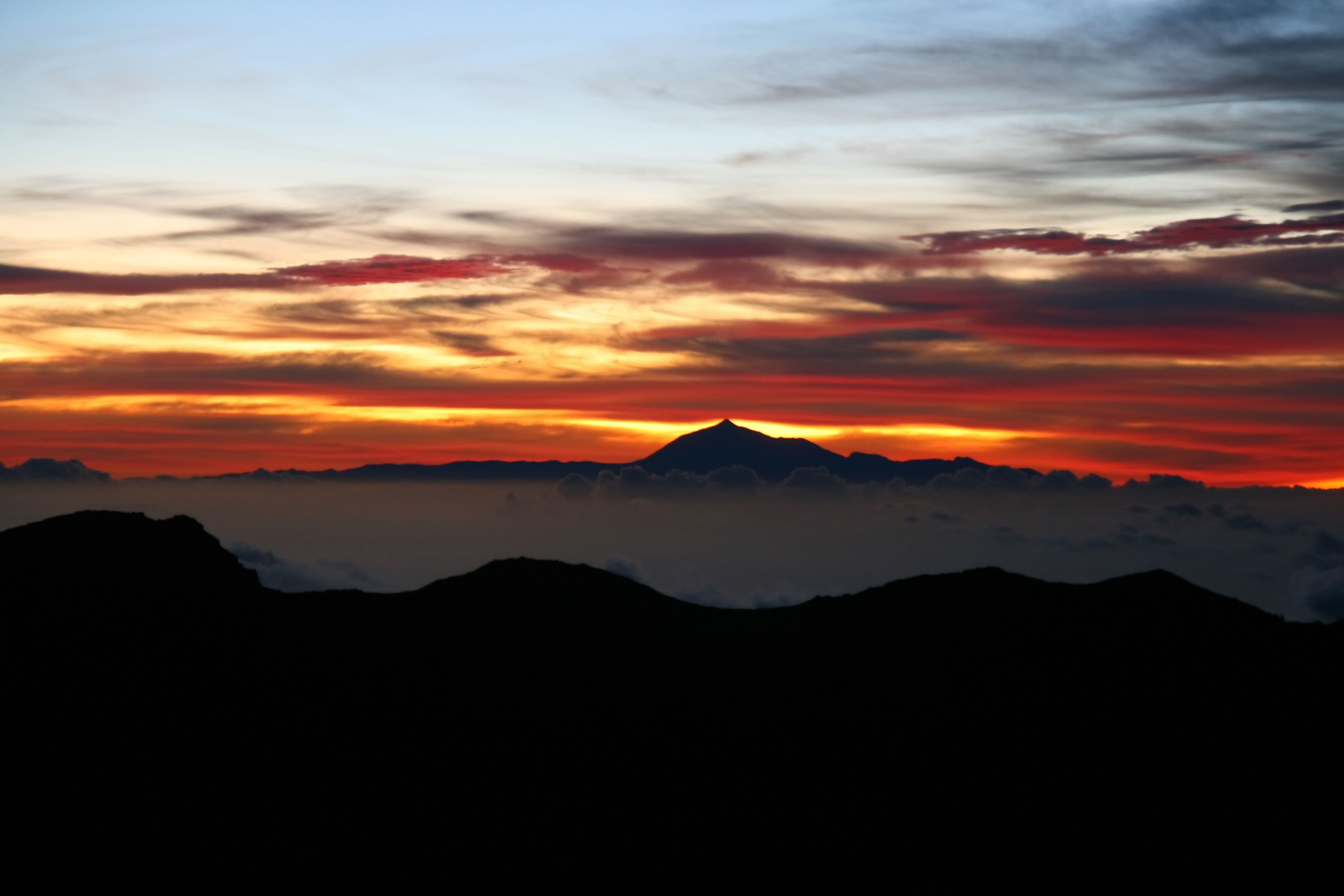 Ko vēl darīt La Palmā? Kā jau teicu, tas jums jāizdomā pašiem, aiz rociņas neviens nevadās. Var agrā rītā uzbraukt salas augstākajā punktā un divvientulībā vērot, kā Atlantijas okeānā mostas jauna diena, lecošajai saulei izgaismojot debesis visās krāsās.