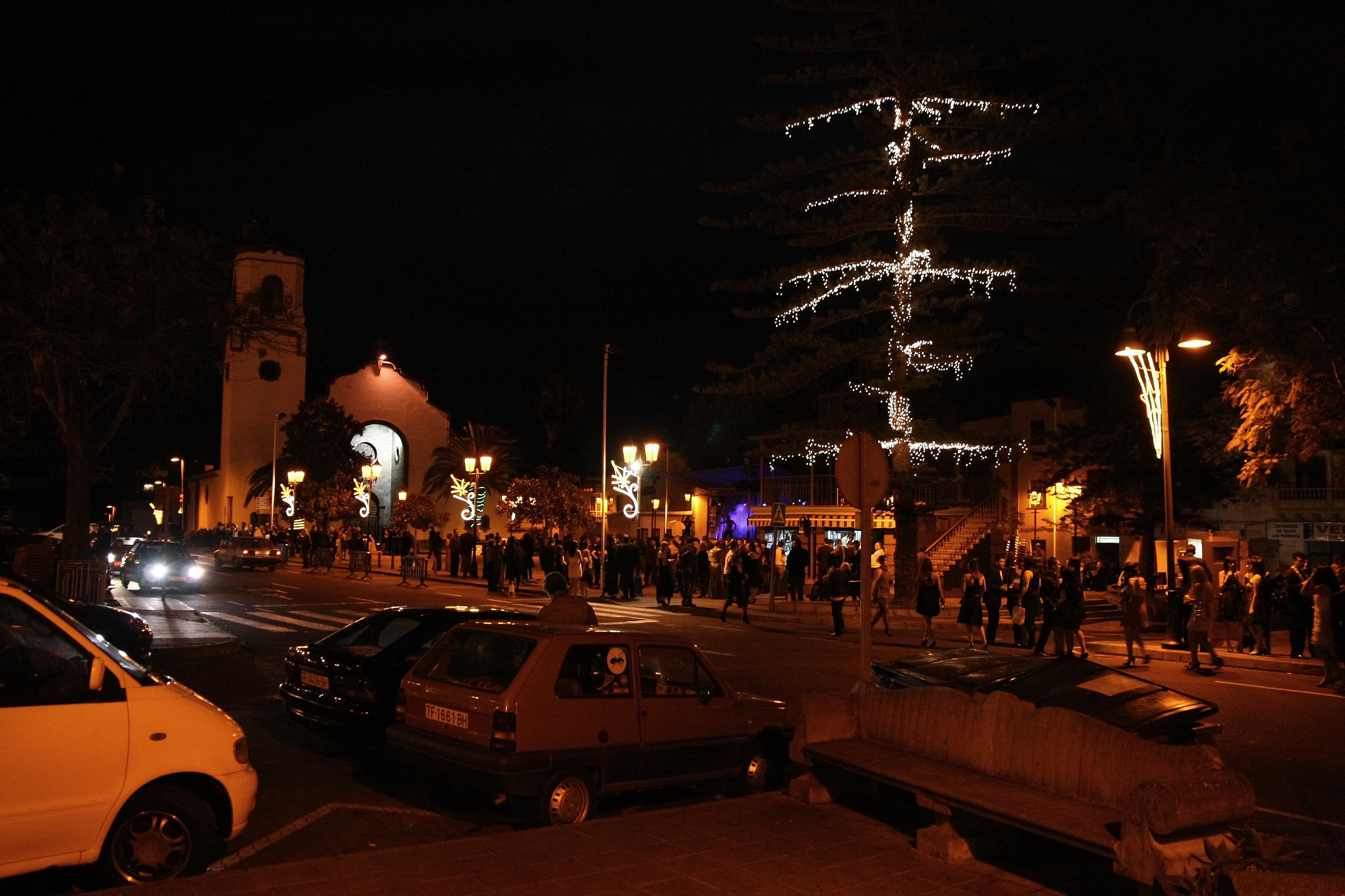 Nedaudz naktsdzīvi tomēr izbaudījām – sagaidot jauno gadu. Jauno gadu devāmies sagaidīt uz mums tuvāko nopietnāko pilsētu Los Sauces, kas atradās pusceļā starp mūsu miestiņu Barlovento un galvaspilsētu. Interesanti, ka pusnaktī viss ir tukšs kā izslaucīts – nekādas tur raķetes un salūti, pilsētas laukumā neviena cilvēka. Tas tāpēc, ka jauno gadu cilvēki sagaida mājās, ģimenes lokā, ēdot vīnogas. Bet pēc tam visi dodas ielās, un tad gan bija ko redzēt. Pilsētas laukumā bija uzslieta skatuve un uz tās spēlēja mūzika, bet visinteresantākais bija, kā cilvēki bija saposušies – visas meitenes un sievietes balles kleitās, ar frizūrām, visi puiši un vīrieši uzvalkos vai vismaz buktētās biksēs ar krekliem. Stundas laikā laukums bija pilns, skats kā pie Casino Royal Montekarlo – mašīnas tik piebrauc un izlaiž brokātos, samtos un zīdos tērptus ļaudis. Vienīgā atšķirība mašīnu markās – La Palmā cilvēki pārsvarā pārvietojas ar apdauzītiem pikapiem, lai varētu aizvest banānus uz nodošanas punktiem. Atmosfēra bija kolosāla, visi draudzīgi un priecīgi, kāds visu laiku pieskatīja un iesaistīja priekos arī pilsētas muļķīti. Vienīgie, par ko neviens nelikās ne zinis, bijām mēs – divi svešie ar pilnīgi nepareizu apģērbu. Kā mums pēc tam izstāstīja mūsu jaunais draugs, poļu izcelsmes darbinieks no mūsu viesnīcas, svētki esot turpinājušies līdz astoņiem rītā.