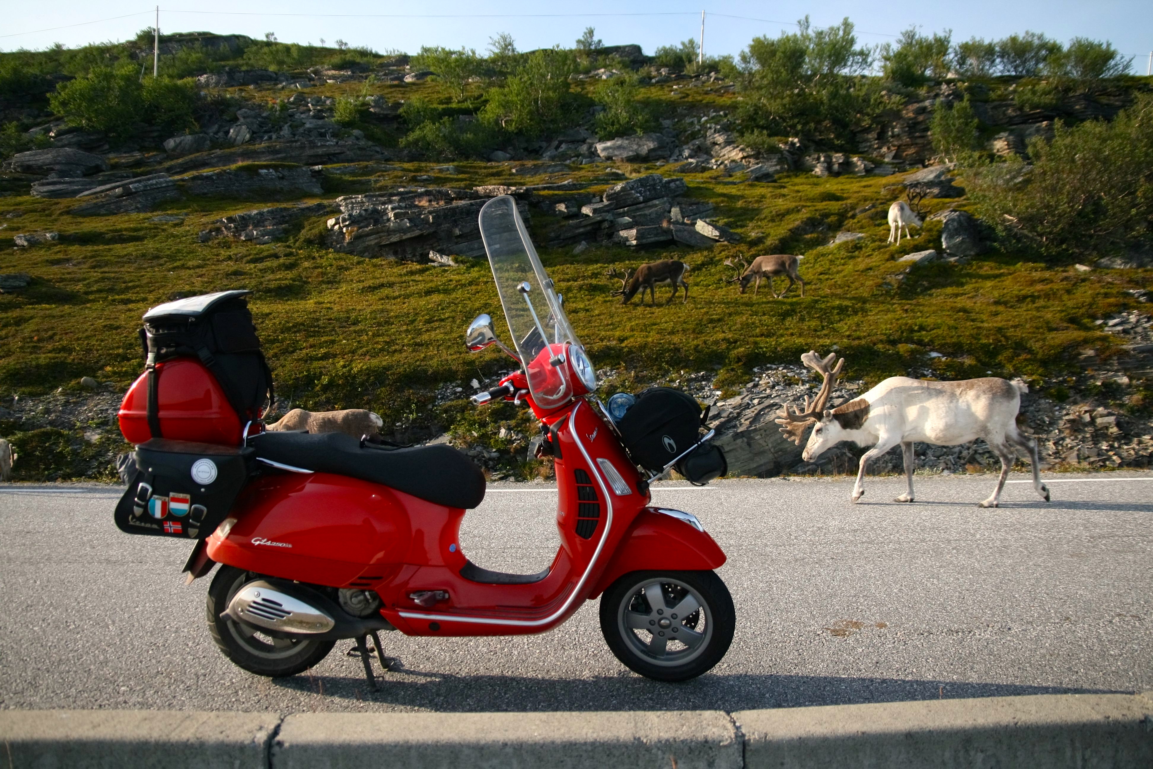 Kamēr mēs bildējamies pie Nordkapa, visi itāļi bildējas pie mūsu Vespas (viņa ir itāļu ražojums, un vidējam statistiskam itālim acīs parādās aizkustinājuma asaras, negaidīti ieraugot vienu no Itālijas lepnumiem tik tālu no savas siltās un saulainās dzimtenes).