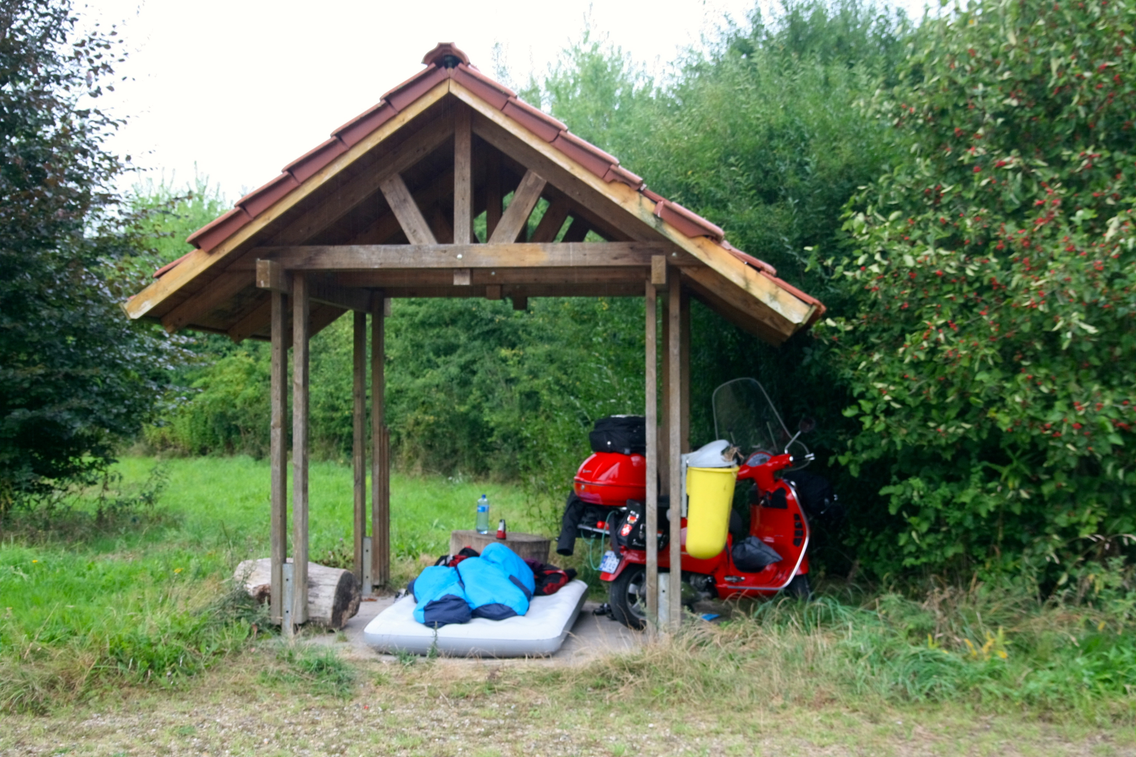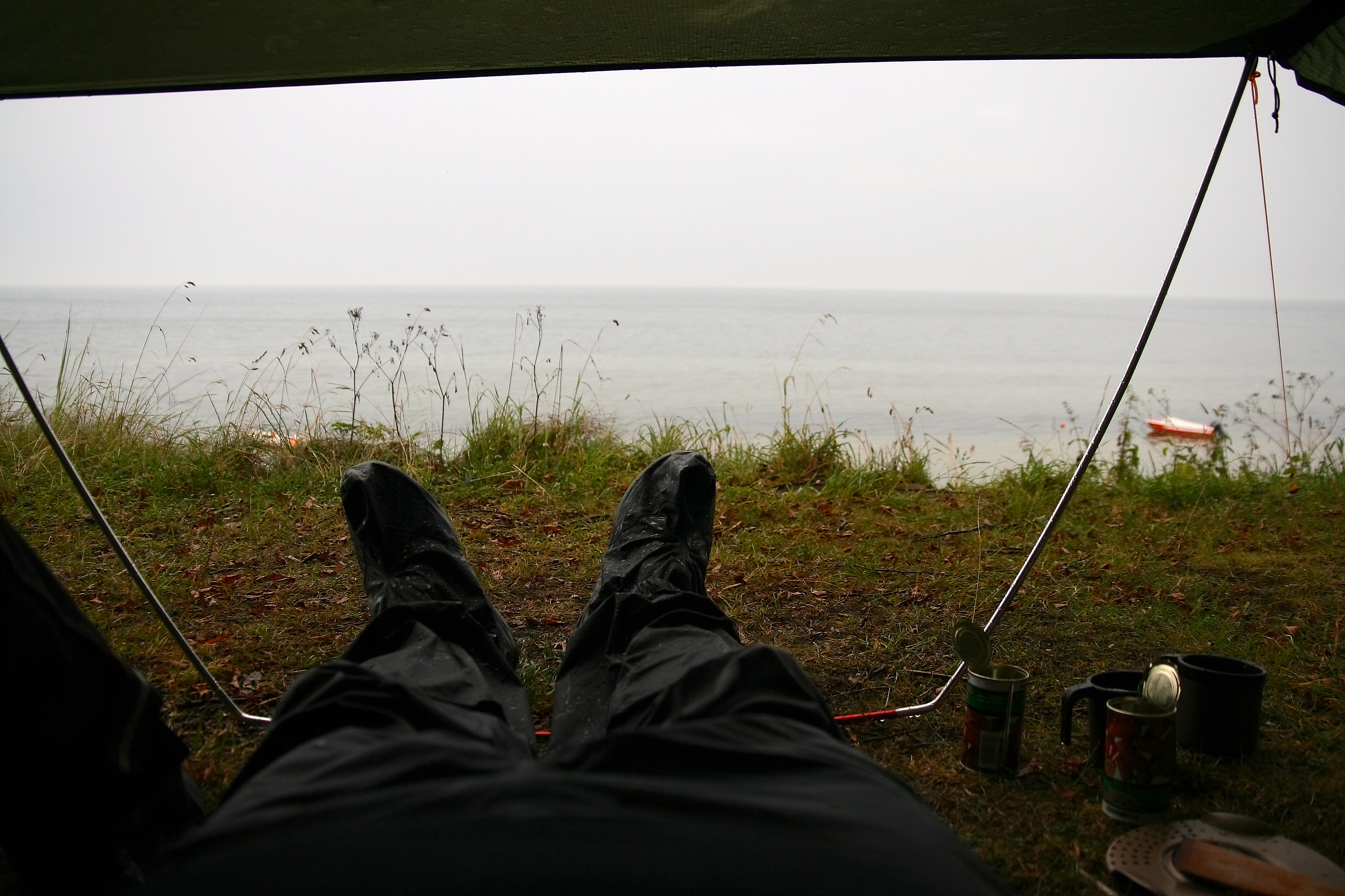 Nākamajā rītā pamostos no tādas skaņas, kādas vienmēr ir filmās par ziemeļiem – kad viens ceļotājs ir iekšā, bet otrs, knapi turot durvis, nāk iekšā, un aiz durvīm ir dzirdamas skaļas vēja aukas. Nu, mums bija uz mata tāpat. Vienīgi filmās parasti komplektā nāk sniegs, bet mums bija stiprs lietus.